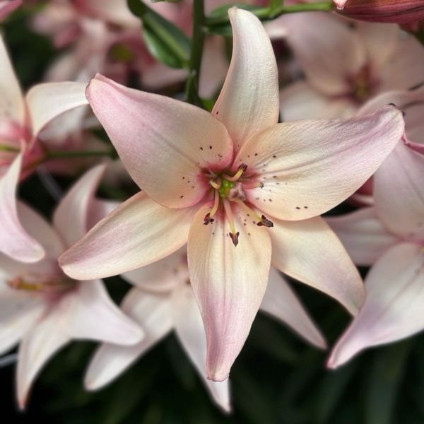 A pollen-free Asiatic Lily with soft salmon-pink blooms.
